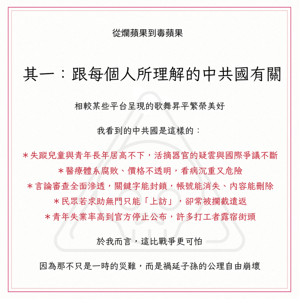 —— 以至於我其實是要支持「非共」價值,但就會直接被貼上綠色標籤。